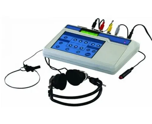 Pure Tone Audiometer is used to measure an individual’s hearing sensitivity across different frequencies. It consists of headphones, a bone oscillator, and a control unit to generate pure tones at various frequencies and intensities. The patient responds to the faintest sounds they can hear, which helps create an audiogram. This graph illustrates the hearing threshold levels across frequencies, aiding in the diagnosis of hearing loss and its severity.